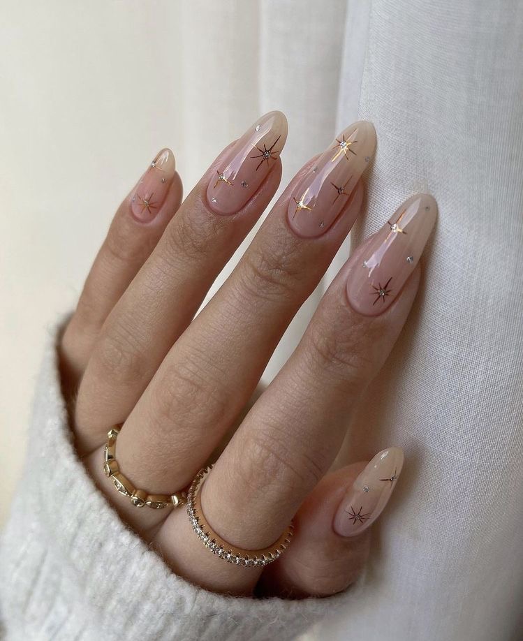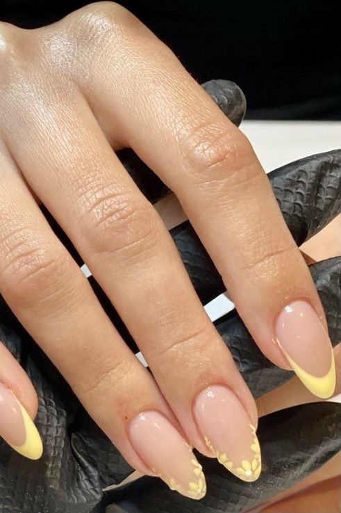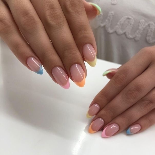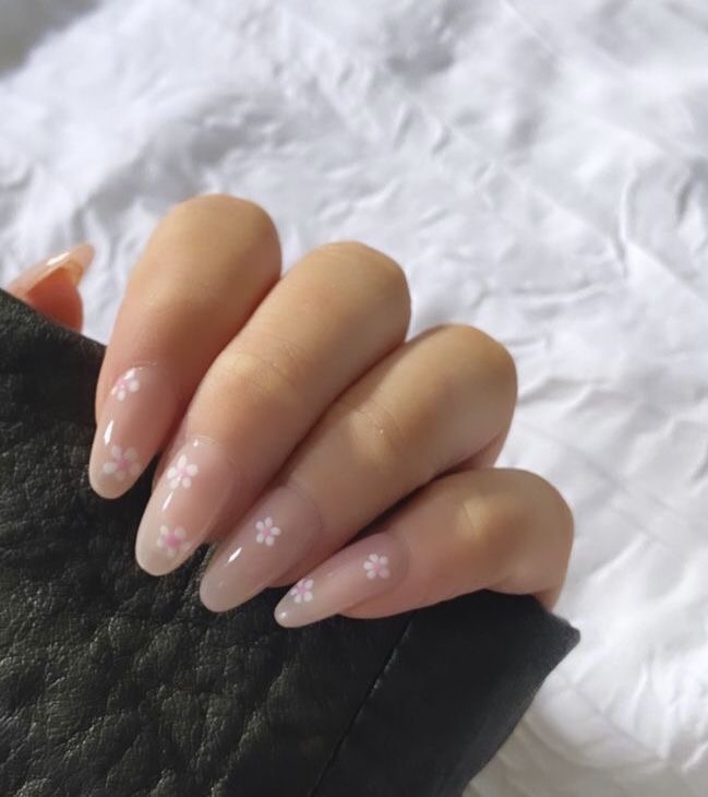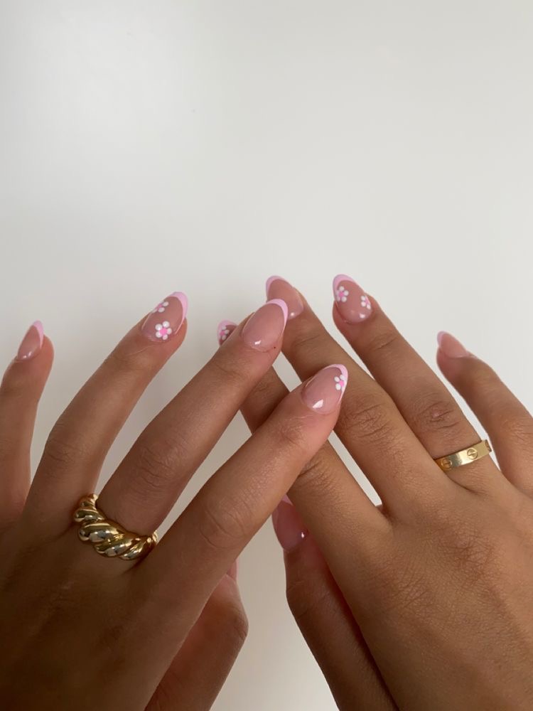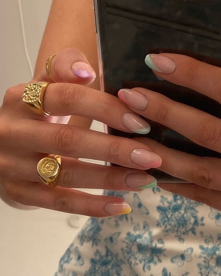 A mood board of nail inspiration that fits the clean girl aesthetic but is more exciting for spring.