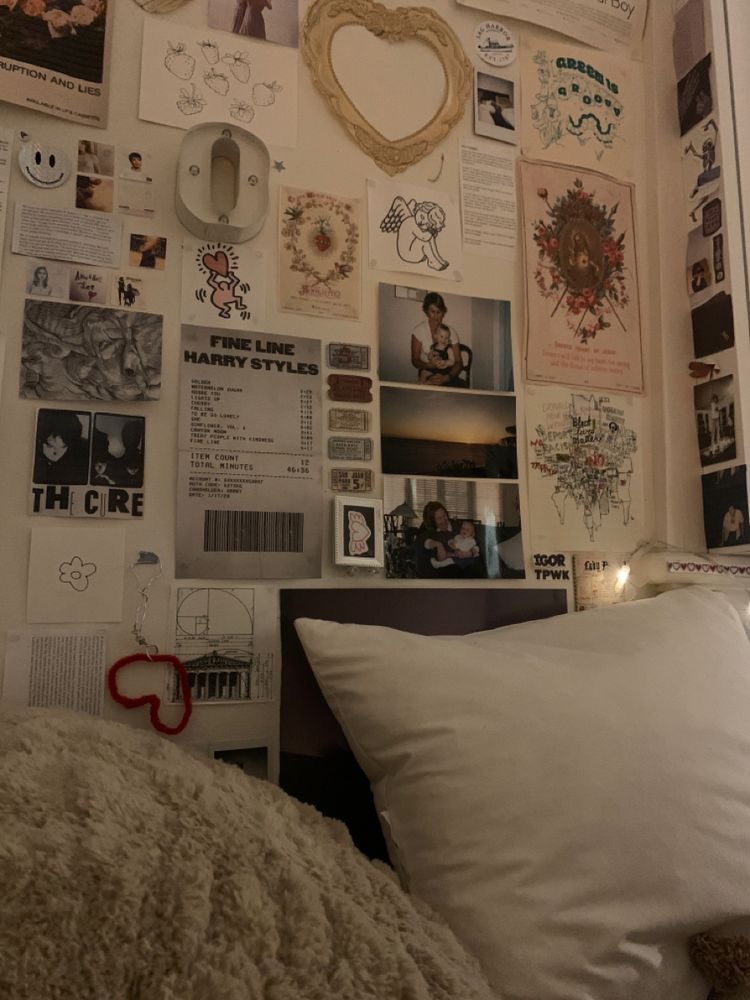 Something that I really enjoyed was including a photo collage walls of my favourite tv series, films, artists etc. I though that the imperfect aspect of them not matching up was a really nice look making it more personal. Including photos of things you enjoy is such an important thing to display in your uni room as it reminds you of home.