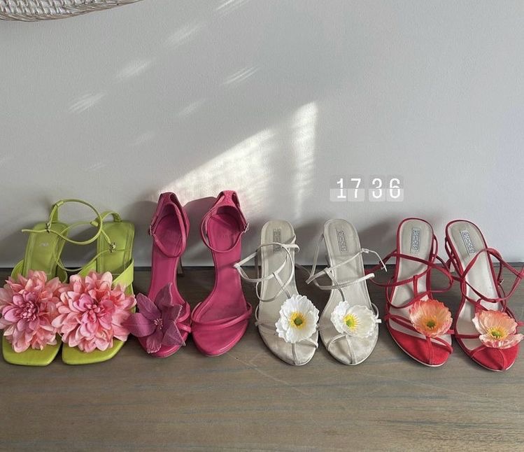 Another one of my personal favourites is the elevation of shoes through the adornment of yet again 3d flowers. I have seen this be executed by Matilda Djerf and create such a delicate look that really embody the warmer months. You are also able to diy heels like the ones pictures below your self, simply by gluing faux flowers to heels you already own (an affordable alternative). I think that this is a great way to raise the complexity of your outfit, with such a subtle feminine addition that is definitely in fashion.