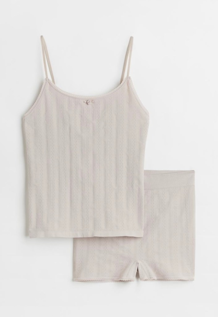 If you are attempting to achieve a clean girl aesthetic, an important aspect of your lifestyle that shouldn’t be neglected is your choice in pyjamas. Wearing minimalist matching pjs allows you to bring style into night time, letting you feel put together after a long day. I have selected a few matching sets to provide you with inspiration and have included links if you wish to purchase any of them.