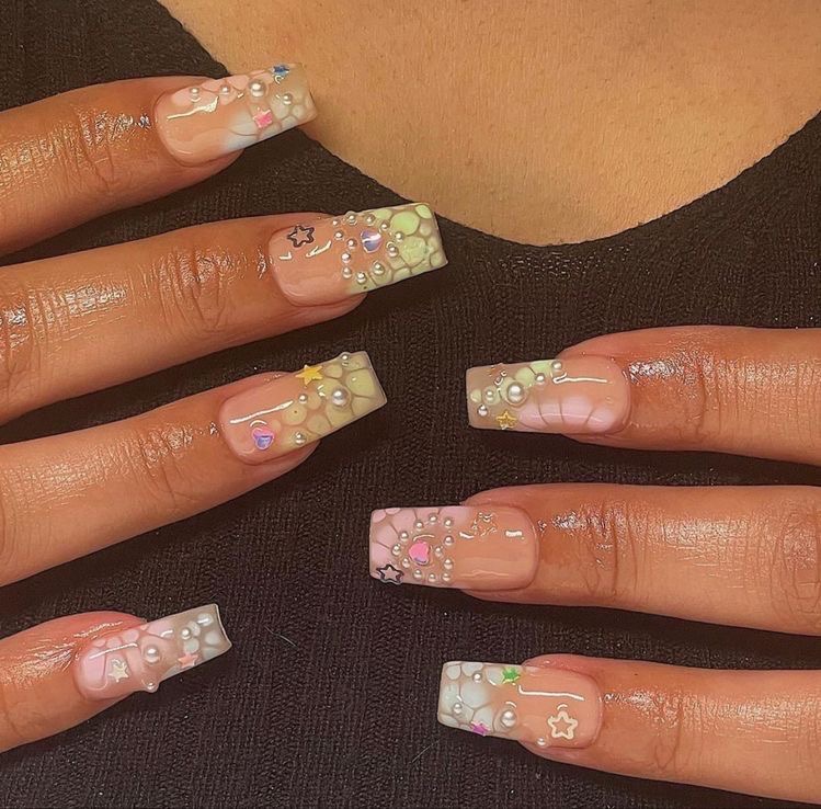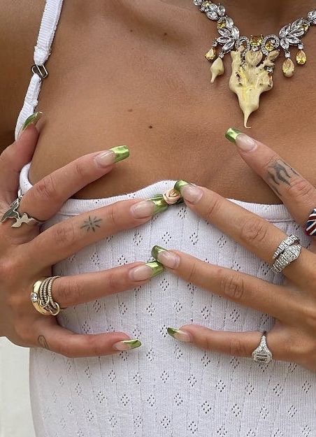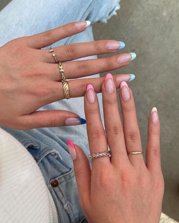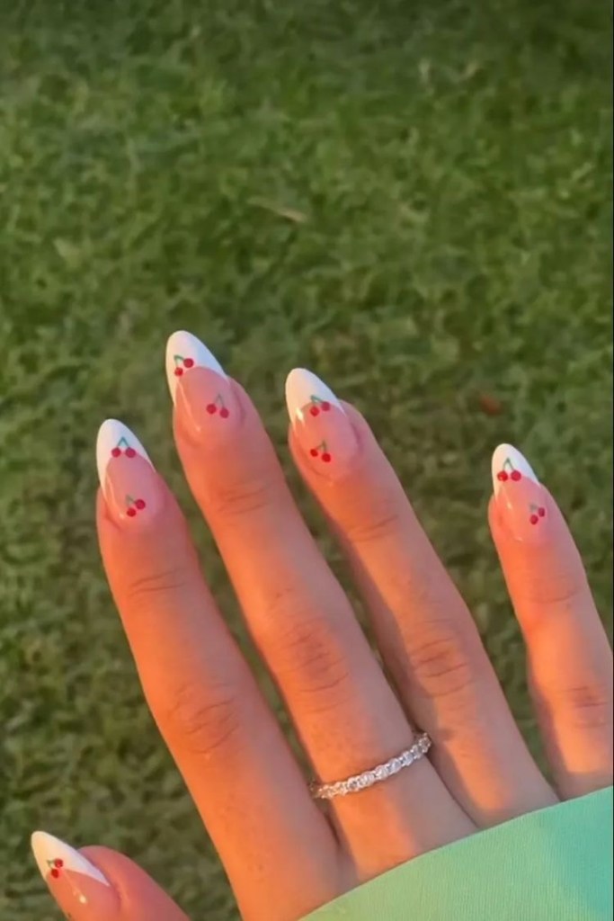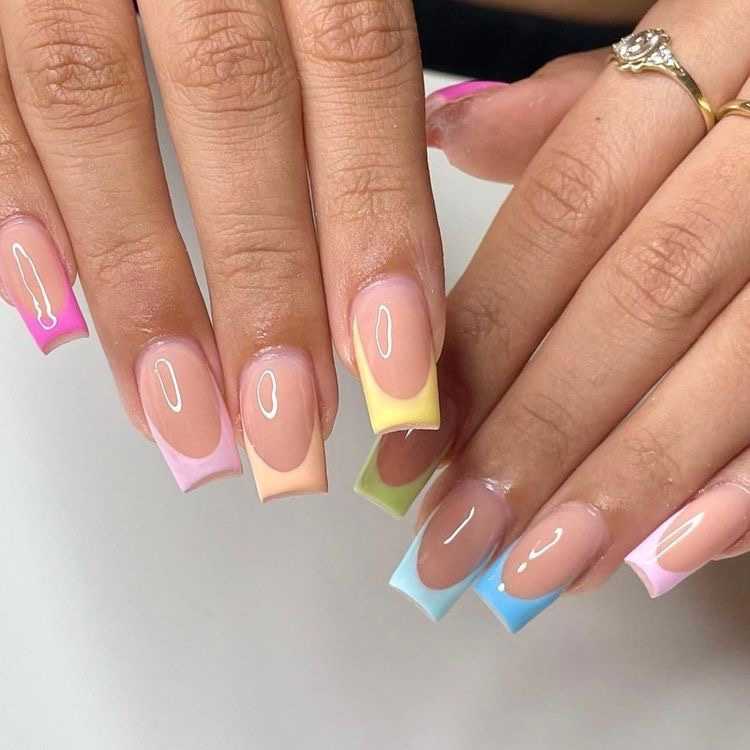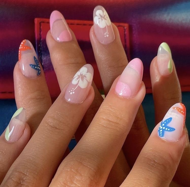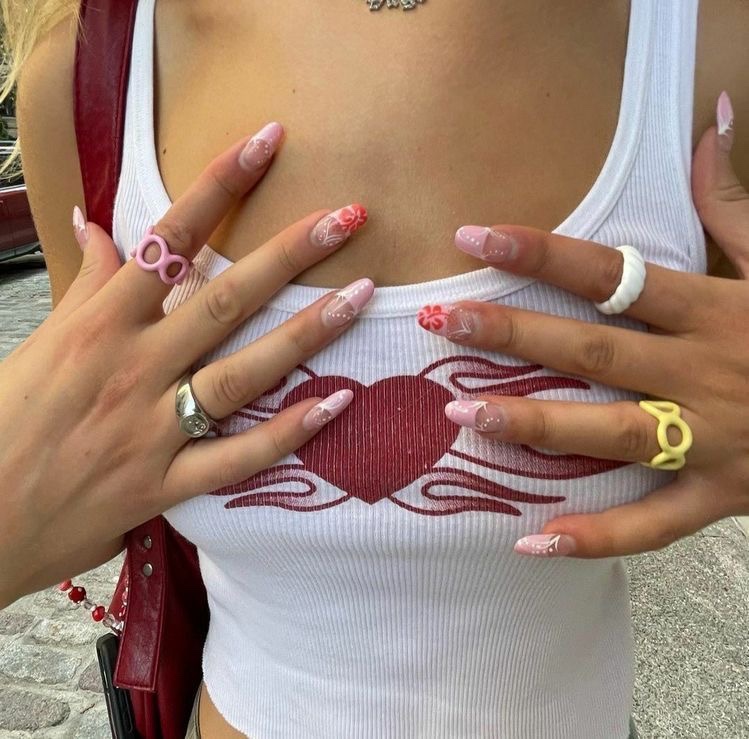 A mood board of minimalist nail designs that give off hot girl summer vibes. This inspiration is for those that are bored of getting the same nails each time and want to venture into something a bit more exciting for this summer.
