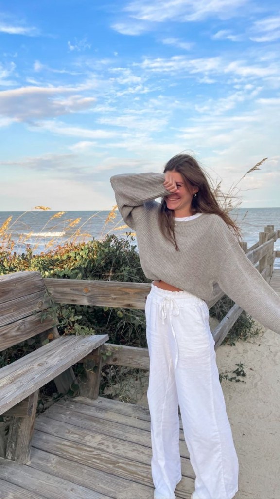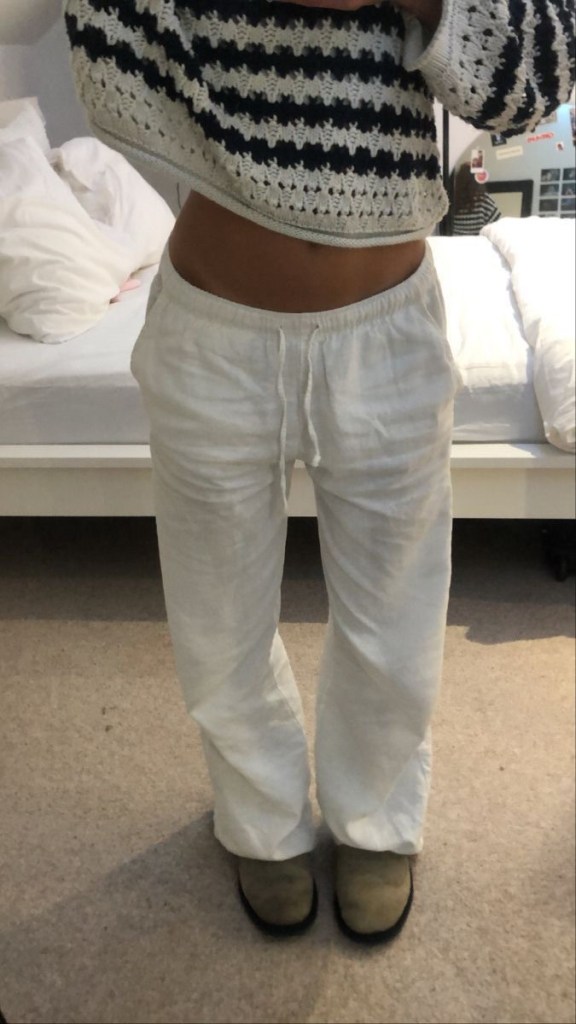 The first staple to add to your wardrobe in order to embody this aesthetic is a pair of casual white linen trousers. These comfortable bottoms are simplistic enough to act as the base around which you can build your outfit. They are timeless and versatile, making them suitable for not only the coastal granddaughter aesthetic but also for various other styles.