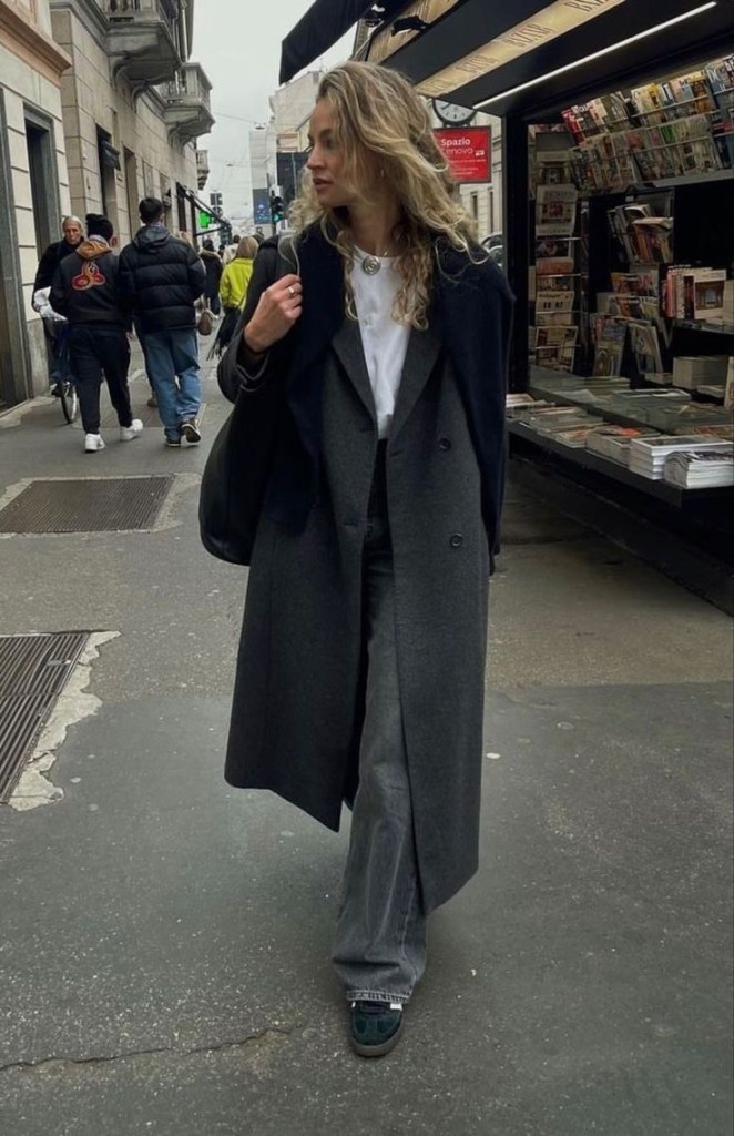 The next staple to secure a place in your wardrobe is a heavy, long winter trench coat. This classic item is not only timeless but is also an absolute trademark for this particular aesthetic. Opting for one in neutral tones will increase its versatility and align it more closely with the ‘frazzled English woman’ aesthetic. It’s a surefire way to embody the style while ensuring you stay warm in colder weather.