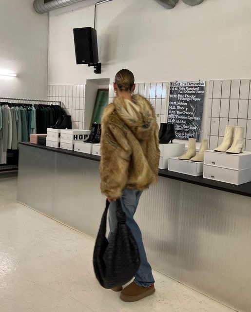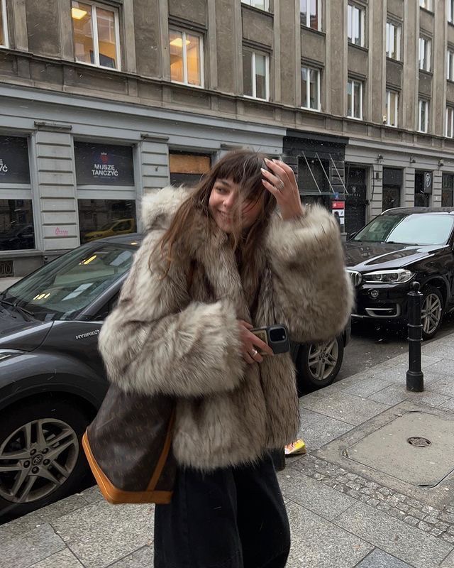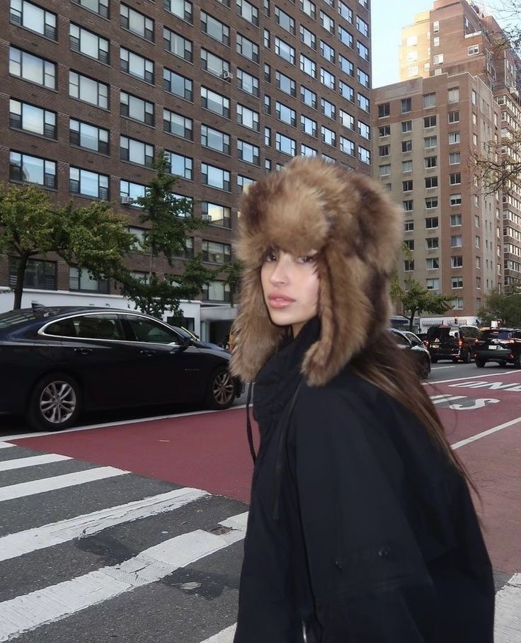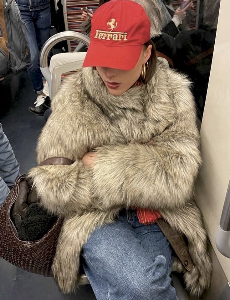 As mentioned in the introduction, the wrong choice in coat layering can easily ruin your outfit. Instead of letting your coat cover up your look, it should be a part of your overall style. For this reason, I suggest considering a fur coat. Not only does it exude a cosy vibe, but when styled correctly, it can make you appear effortlessly luxurious. If a full fur coat feels too intense for you, you can opt for a simple fur hat as shown above, which still captures that desired aura.