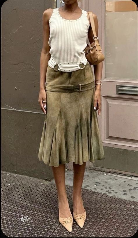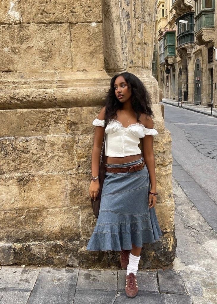 Midi skirts of this style are undoubtedly among the most flattering additions to your spring wardrobe. With their low-rise fit and flared silhouette, they seamlessly enhance any ensemble. Offering just the right amount of coverage, they allow for bare legs during the warmer spring months without compromise. As you curate your collection for versatile chic, consider these skirts a must-have.